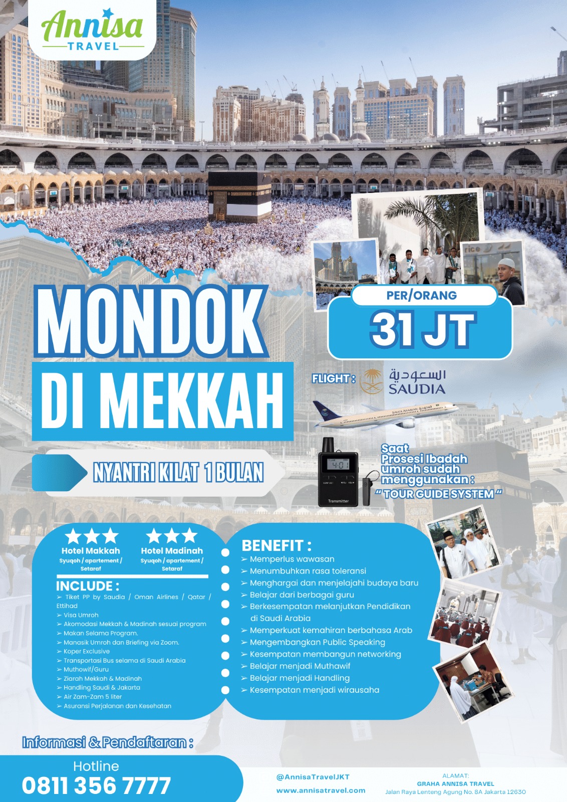 Di antara banyak travel di Indonesia, Annisa Travel adalah salah satu pelopor yang meluncurkan produk Umrah Daurah ke masyarakat. Paket yang mereka tawarkan adalah paket 30 hari mondok di Mekkah