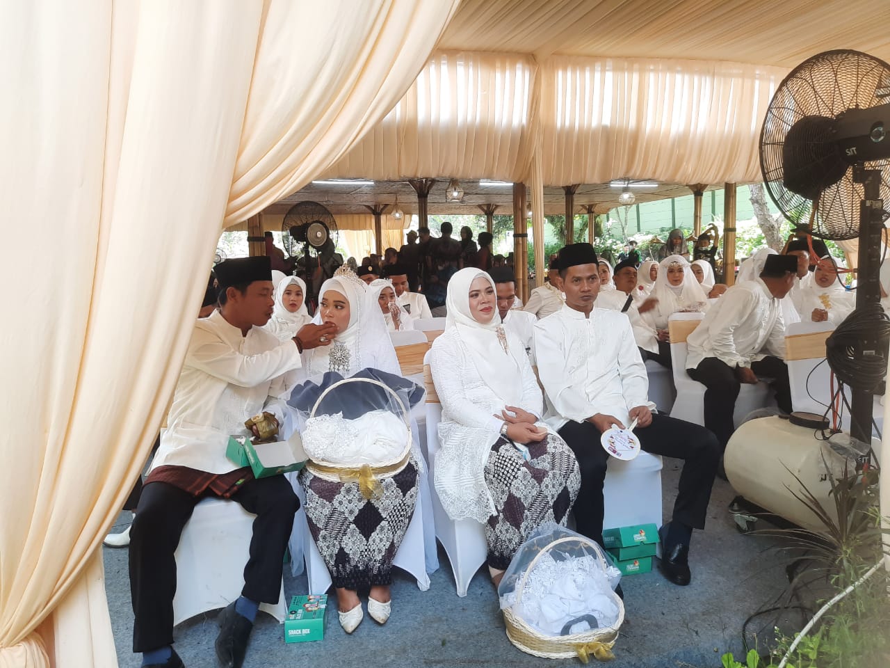 Acara berlangsung penuh kehangatan dan keakraban, tampak para pasangan mempelai pengantin penuh dengan kebahagiaan. Apalagi pernikahan mereka dihadiri Wali Kota Tangerang Selatan, Benyamin Davnie sebagai saksi pernikahan.