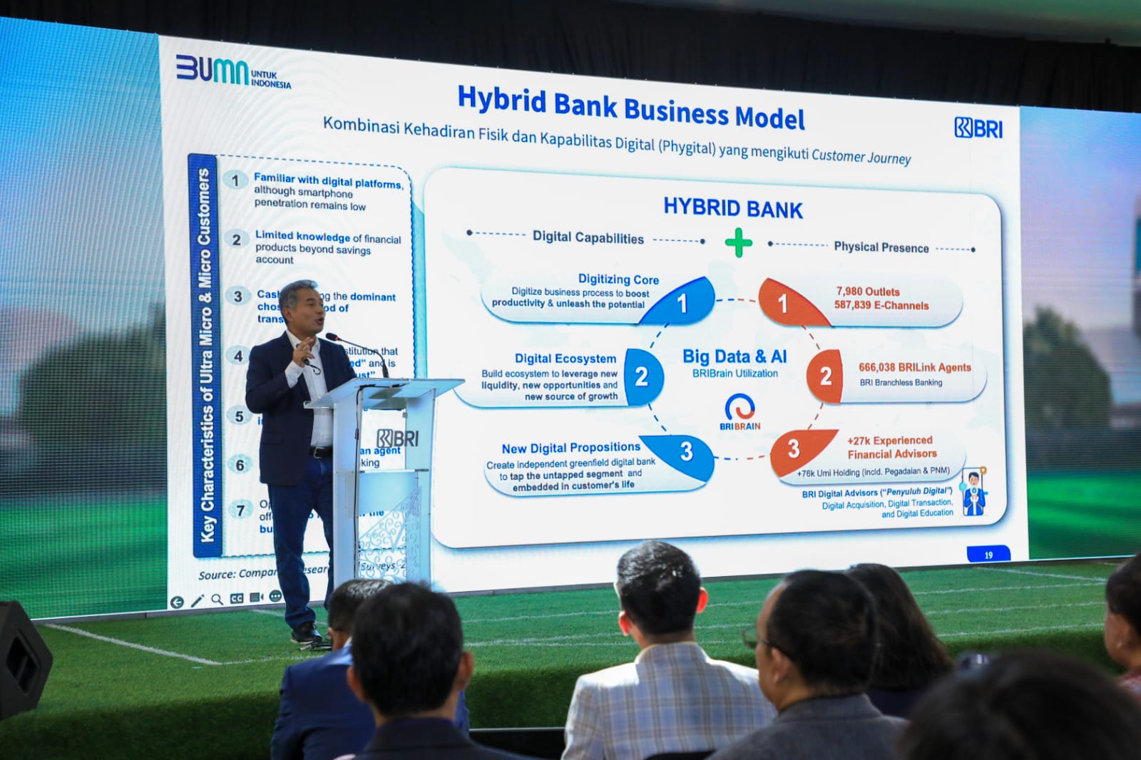 “Permodalan yang sangat kuat maka kompensasinya adalah return on equity-nya rendah karena terlalu besar modalnya. Tapi ini sama-sama tinggi. BRI menjawab tantangan ini. Modalnya sangat kuat, artinya bank ini sangat sehat dari sisi permodalan. Tapi modal yang kuat itu juga di-leverage menjadi revenue dan return yang baik. Buktinya apa? Return on equity-nya adalah 20,01%,” papar Sunarso.